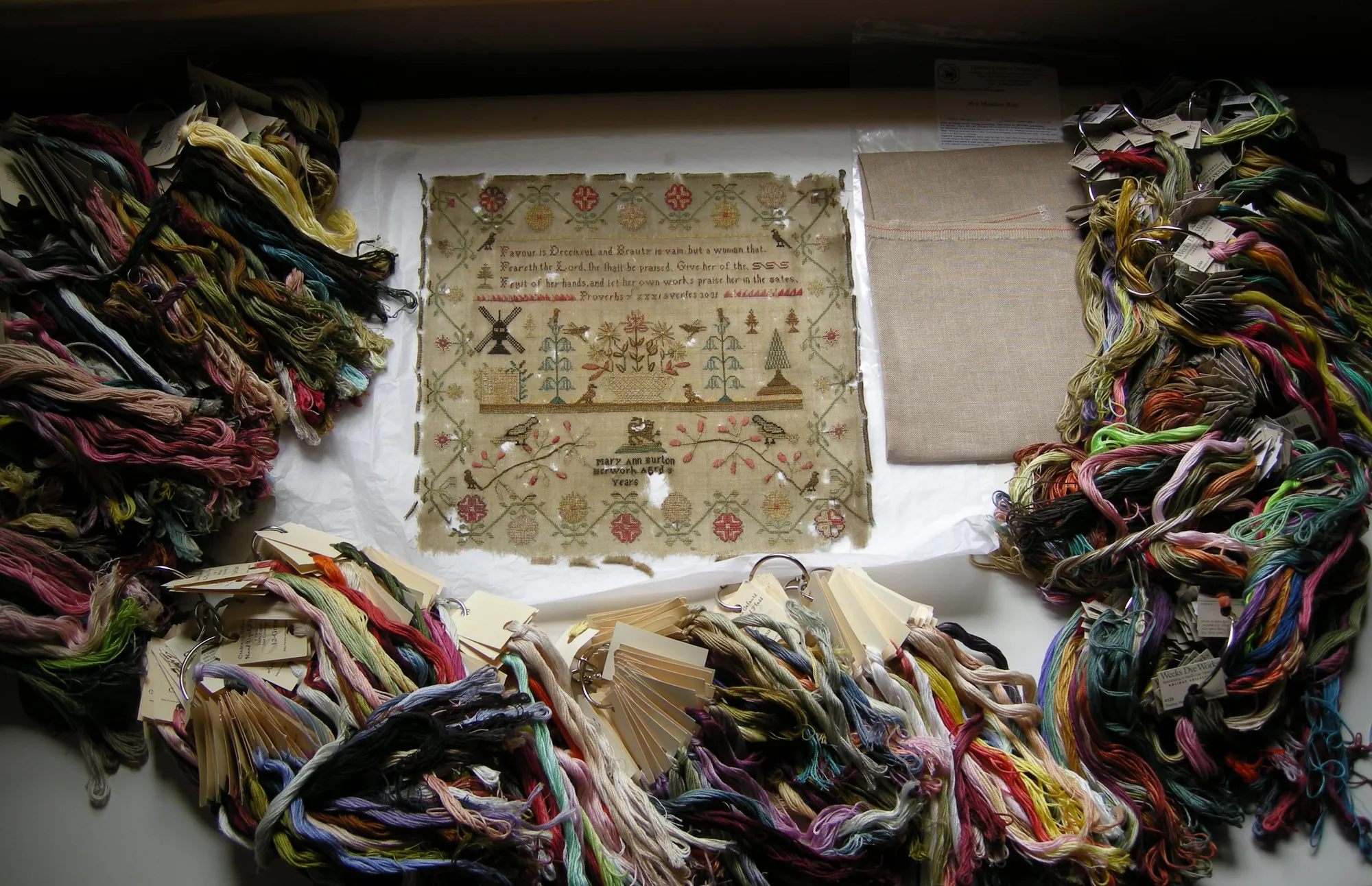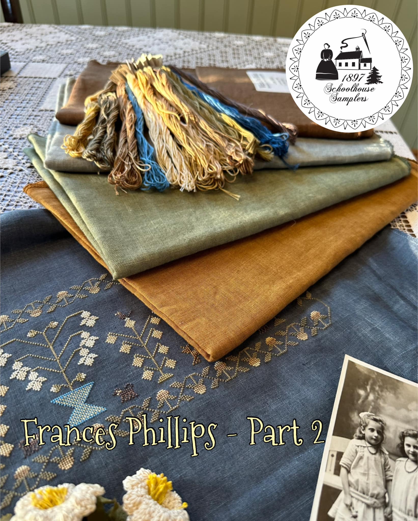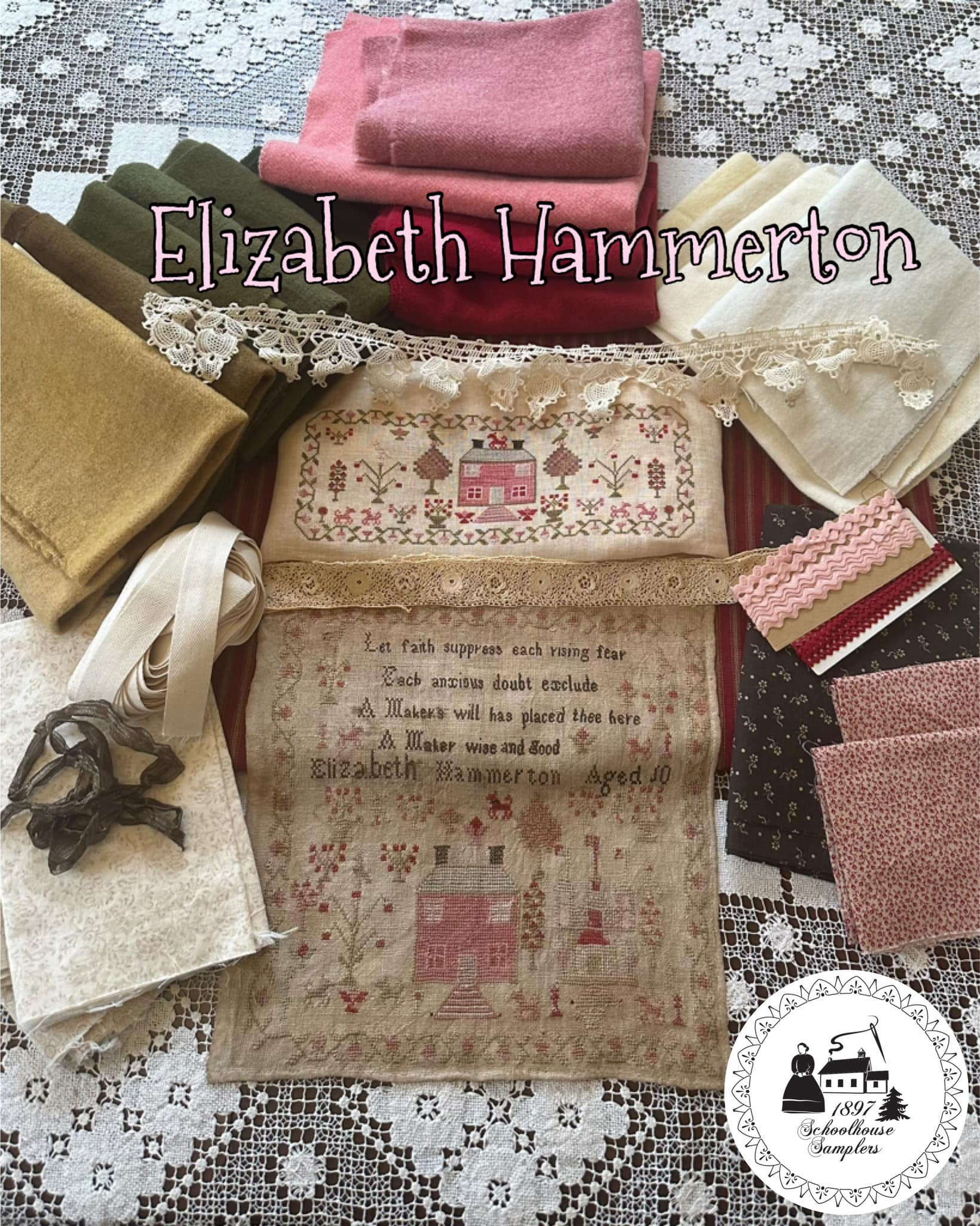 LIANNE holds incomplete, timeworn, damaged & unusual samplers as precious and deserving of love & attention. She is the caretaker of a growing collection of antique schoolgirl samplers and the designer behind 1897 Schoolhouse Samplers. Her diverse collection of samplers, currently numbering more than 350 pieces, includes dated examples from 1726 to 1978, made in the UK, U.S.A., Europe and Canada.